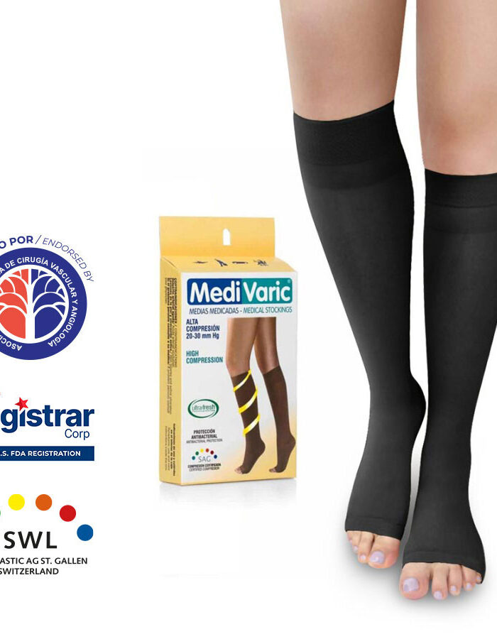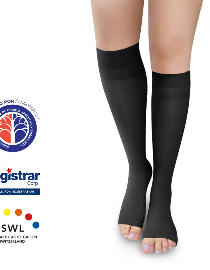 Media de Compresión Alta – Rodilla Dedos Libres Opaca 20-30mmHg