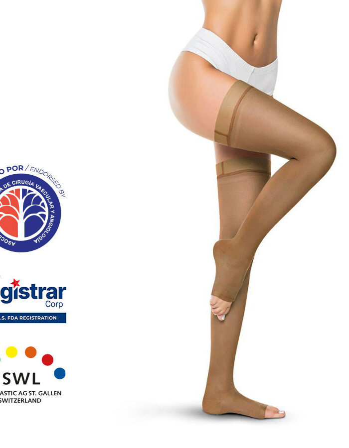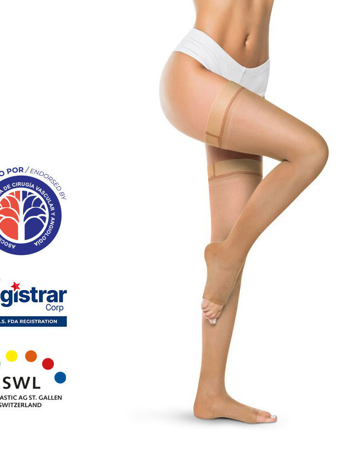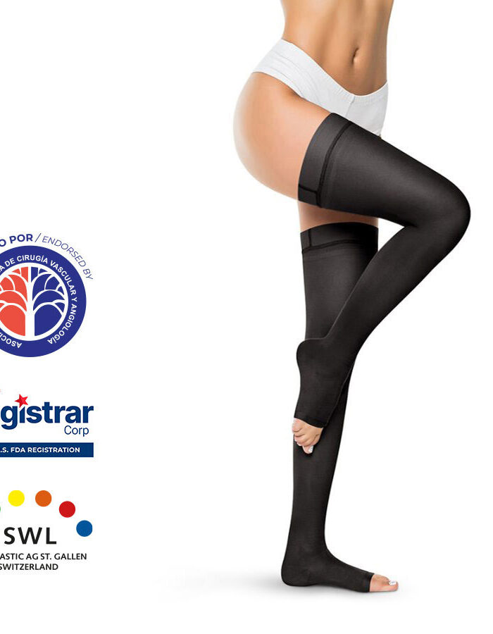 Medias de Compresión Alta – Cadera Dedos Libres Opaca 20-30mmHg